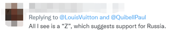 还有人认为:“我只看到一个‘Z’,表示(LV)支持俄罗斯。”