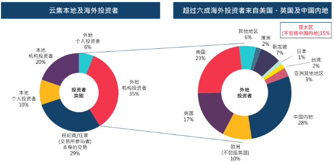 从资金结构上看,港股资金结构高度国际化。据港交所2018年数据,港股市场个人投资者占比16%,机构投资者占比84%;区域上看,香港本地投资者占比30%,外地投资者占比41%,经纪商交易占比29%。在外地投资者结构中,内地占比最高,为28%;其次分别是美国(23%)、英国(17%)和欧洲(10%)。
