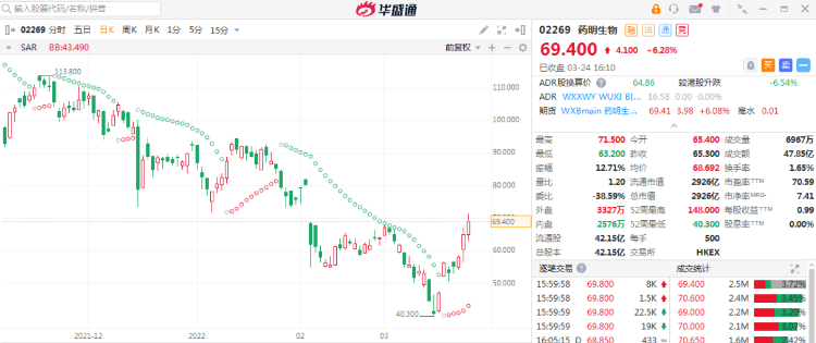 - 中泰证券发研报指,药明生物作为全球生物药外包服务行业稀缺标的,所处行业高景气、公司优势凸显,后续随着现有项目进入商业化,以及XDC、疫苗、双抗等平台加速兑现,长期空间广阔,未来可期。维持药明生物“买入”评级。