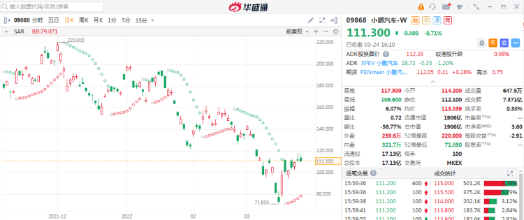 - 浦银国际表示,小鹏已经在美股、港股双重上市,受到潜在的美股退市压力带来的资金流出的风险相对更小。公司估值目前处于历史低位,预计交付量今明两年将保持高速增长,未来股价反弹机会较大。