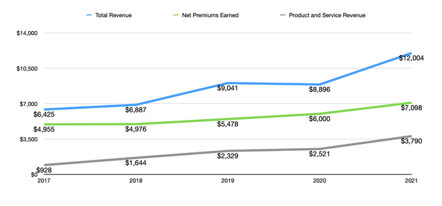 - 从具体业务来看,Alleghany财产险和意外险因业务定价合理,实力突出。财务数据显示,公司在2020年受疫情影响,收入出现一定下滑后,在2021年重新实现增长。2017年,净保费收入为49.6亿美元(如下图),到2021年该指标增长至近71亿美元。