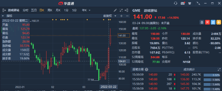 發仔注意到,著名的“Meme股”游戏驿站 $GME 昨日逆市大涨超14%,同期美三大股指悉数收跌,其中纳指 $IXIC 跌超1.3%。此外,游戏驿站周二还录得超30%的惊人涨幅,近两日总涨幅近50%。