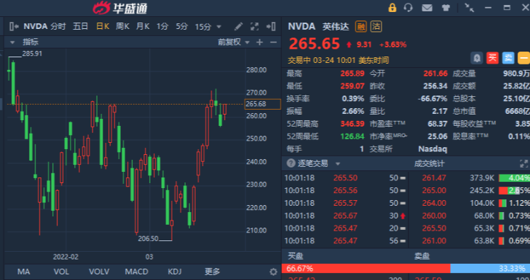 美股半导体板块走强,纳微半导体(NVTS)涨超11%,英伟达(NVDA)涨3.5%,英特尔(INTC)涨3%,美国超微公司(AMD)涨1.7%。