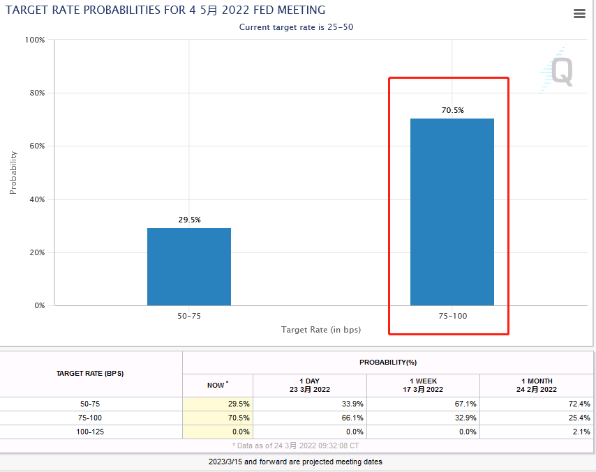 另外,根据Fed Watchtool工具最新数据显示,市场预期美联储5月加息50基点的概率已经达到70.5%,这与美联储官员表态基本一致。