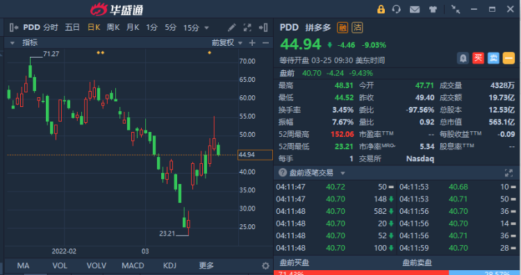 华盛资讯3月25日消息,美股盘前,热门中概股盘前普遍低开,拼多多(PDD)、滴滴(DIDI)跌超9%,哔哩哔哩(BILI)跌超8%,爱奇艺(IQ)跌近7%,小鹏汽车(XPEV)、理想汽车(LI)跌超6%。