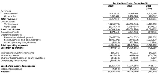 最新发布的财报显示,2021年第四季度,蔚来净亏损21.43亿元,达到两年来亏损幅度之最。