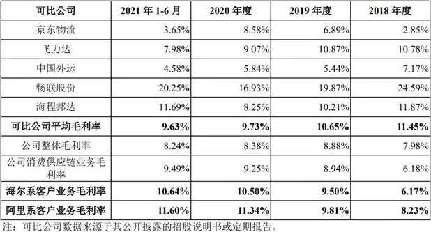 与同行业可比公司相比,日日顺的毛利率显著较低。而其实,物流行业也在“内卷”,可比公司平均毛利率在逐年降低。另一方面,从日日顺自身来看,为开拓市场,日日顺不得不从毛利较低的干线运输等业务入手,从而拉低了它整体的毛利率。