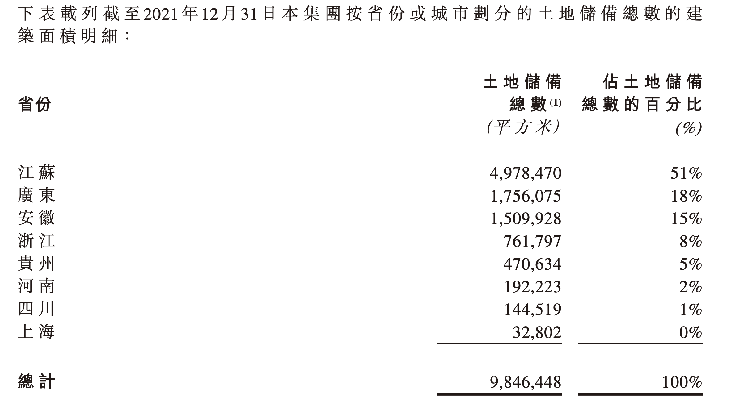 截至2021年12月31日止年度,本集团(连同其合营企业及联营公司)于海安、南通、靖江、泰州、仪征、常州、阜宁、广德及顺德购入9个土地,土地储备1208236平方米。以总建筑面积计,加权平均每平方米权益土地成本约为4901元。