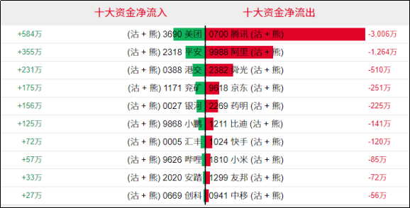 上周五北水南下资金录得净卖出,为约32.49亿港元。个股方面,现代牧业单日录得约2.74亿港元北水资金净买入,李宁单日亦录得约1.09亿港元北水资金净流入;相反,腾讯单日录得约8.7亿港元北水资金净卖出,美团单日亦录得约5.02亿港元北水资金净流出。