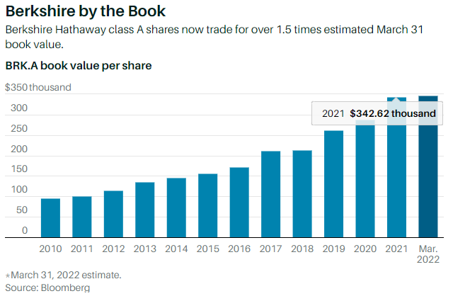 Bloomstran还认为,截至2021年底,伯克希尔A类股 $BRK.A 的内在价值约为每股60万美元,跟目前的股价相差不大,但这个内在价值并不是静止不变的。考虑到伯克希尔的收入不断增长,以及苹果等持仓股的上涨潜力,这个内在价值应该会稳步走高。