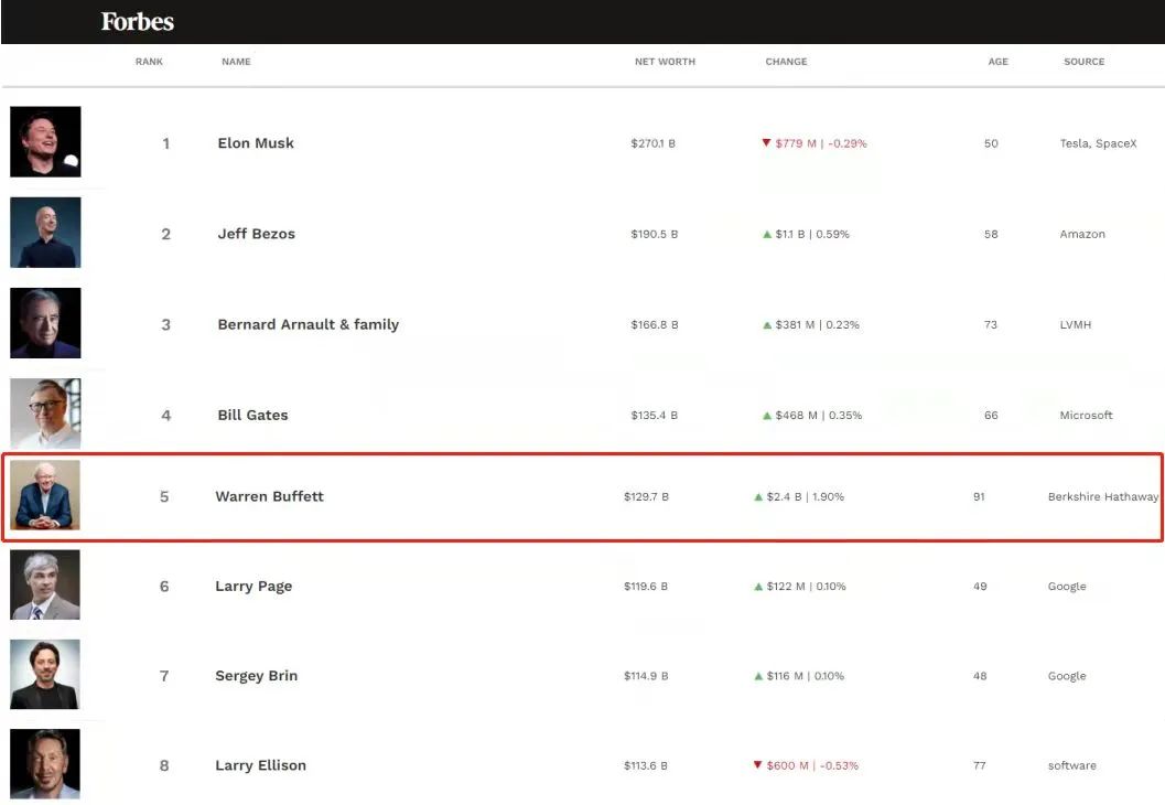 2022年以来,全球市场面临多重冲击,美科技股泥沙俱下,全球富豪榜也随之再度洗牌。此时,91岁的股神巴菲特又上演了精彩表现,成功跻身世界前五大富豪,这是其2022年首次闯入前五位。他成为了全球富豪榜TOP10中唯一一位实现资产正增长的入选者,身价年内增长230亿美元。