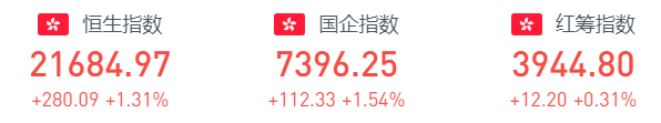 截至3月28日周一收盘,恒生指数涨1.31%,报21684.97点;国企指数涨1.54%,红筹指数涨0.31%。恒生科技指数涨2.62%,美团涨11.56%,快手涨6.08%,阿里涨3.45%,腾讯涨2.81%。