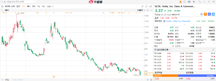 当地时间周一,美股桩概念股Volta发布公告称,公司CEO和董事会主席双双辞职,但并没有给出造成两人辞职的具体原因。受此消息影响,截至周一收盘,Volta收跌18.4%,股价仅为登陆资本市场后历史高位的近四分之一。去年八月Volta通过反向收购SPAC实现上市。