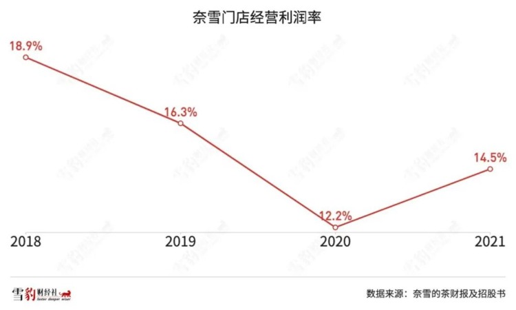 2021年,奈雪净新增326家门店,同比增长66.4%,依然保持高增速。但单店经营利润率已从高点时的18.9%滑落至14.5%,并未随着门店数量的扩张有显著增长。
