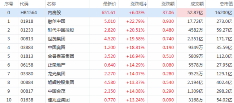 港股内房股、物管股在经历29日短暂回调后,30日再度拉升大涨。截至发稿,融创中国涨23.77%,报5.05港元每股;世茂集团、时代中国涨超20%;融创服务涨19.27%,世茂服务涨逾13%,碧桂园服务涨超11%。