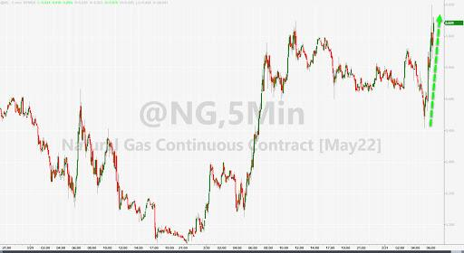 欧洲天然气期货价格一度飙升至每1000立方米1450美元;美国天然气价格也大幅上涨,这可能是因为是市场预计美国的大部分产量现在将通过LNG输送到欧洲,可能会造成美国当地的供应短缺。