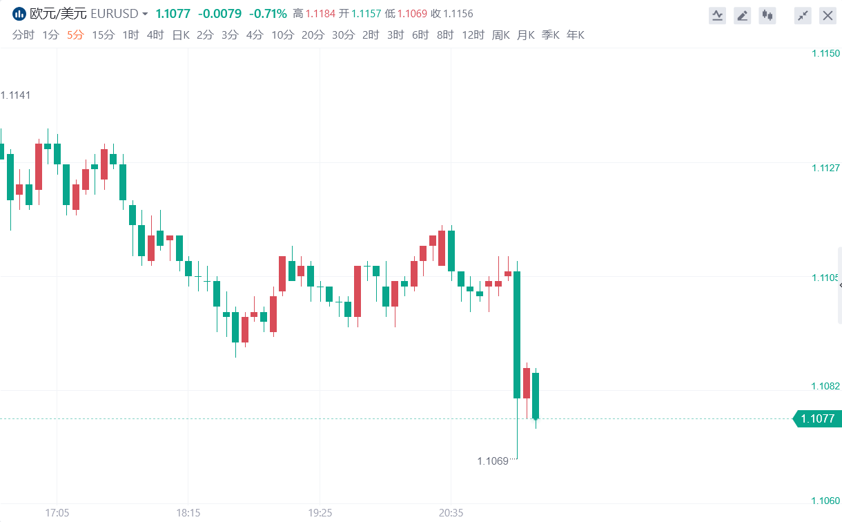 在普京发表讲话后,欧元兑美元一度短线下跌40点。