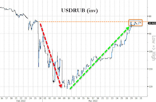 值得注意的是,尽管俄罗斯卢布一度暴跌了36%,但目前已经回到了2月24日俄乌危机升级前的水平。
