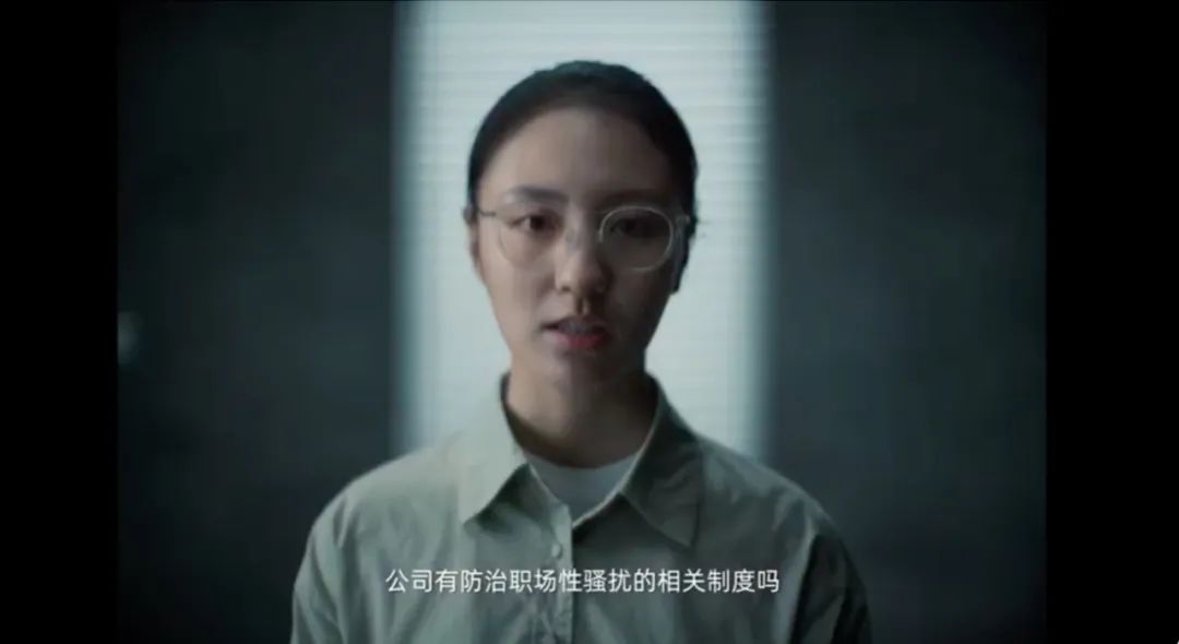 同样也是面试的场景,片中的女性和男性都敢于站起来去问公司“你们公司有防治职场性骚扰制度吗?”他们问 “若是企业没有公开的防治制度,受害者便无章可依”“只有提问的人越多,声音越大,企业开始重视并建立这类制度,才是最有效的防治手段”。