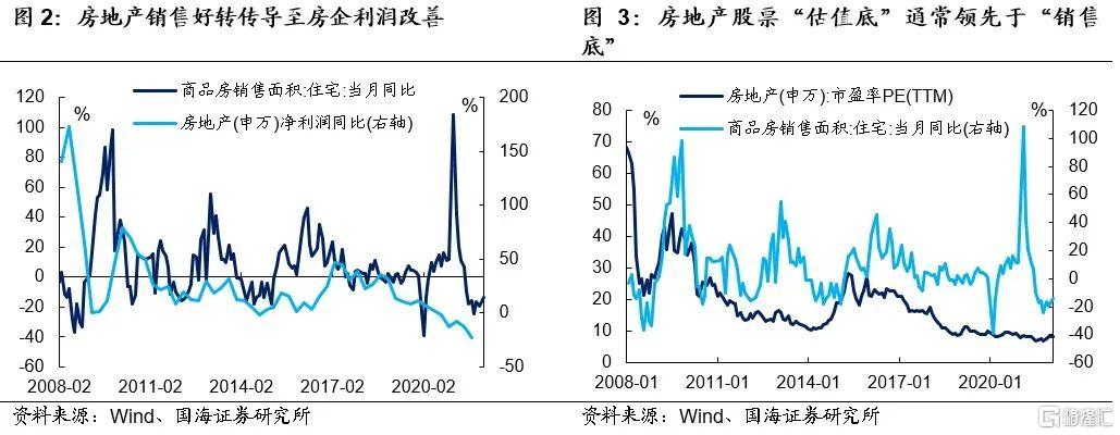 (1)“销售底”出现前,“稳地产”政策陆续推出,提振房地产股票估值;