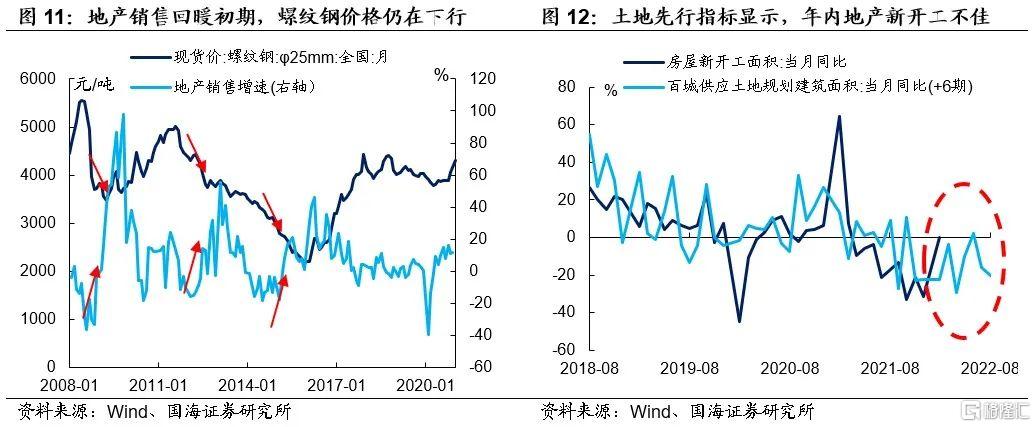但需要注意的是,由于地产销售回暖领先于地产投资回暖(“政策底”-“销售底”-“拿地底”-“新开工/投资底”,具体传导逻辑参考本系列第一篇报告),销售数据与上游商品价格趋势并不同步。