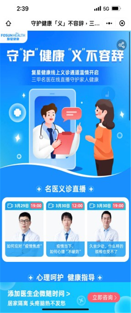 复星健康守“沪”健康 “义”不容辞线上义诊专区