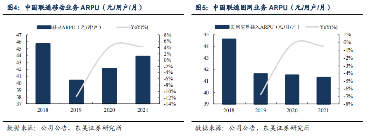 其中,中国联通在2021年的ARPU升至43.9元,较2020年增长1.8元,稳步增长。固网宽带业务收入同比增速创新高,2021年宽带接入收入为448亿元,同比增长5.2%。