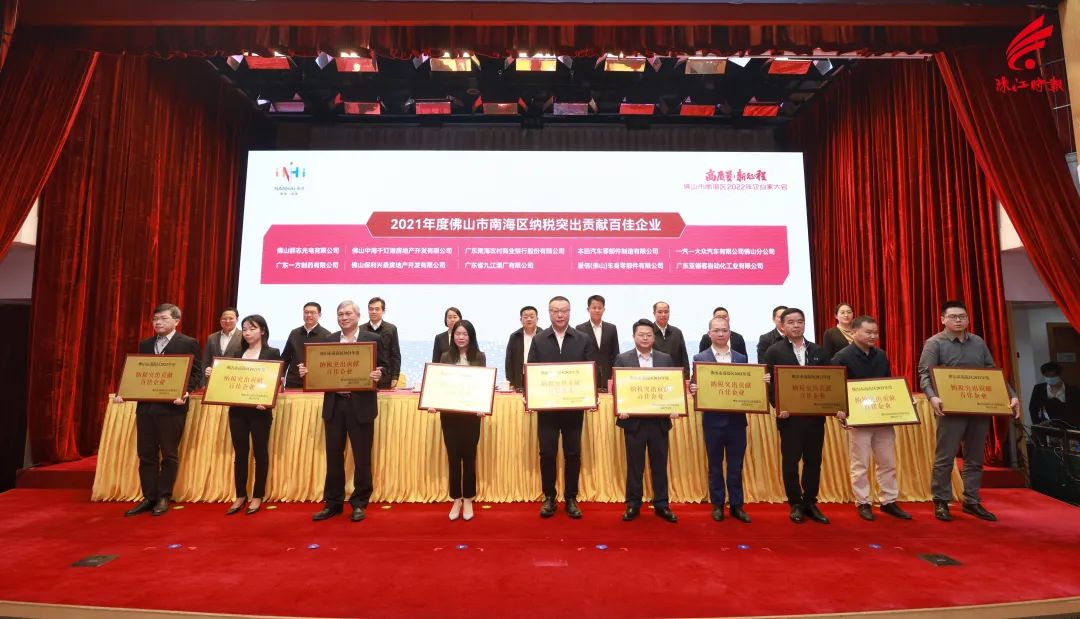 2021年度佛山市南海区纳税突出贡献百佳企业代表上台接受表扬。(两批)