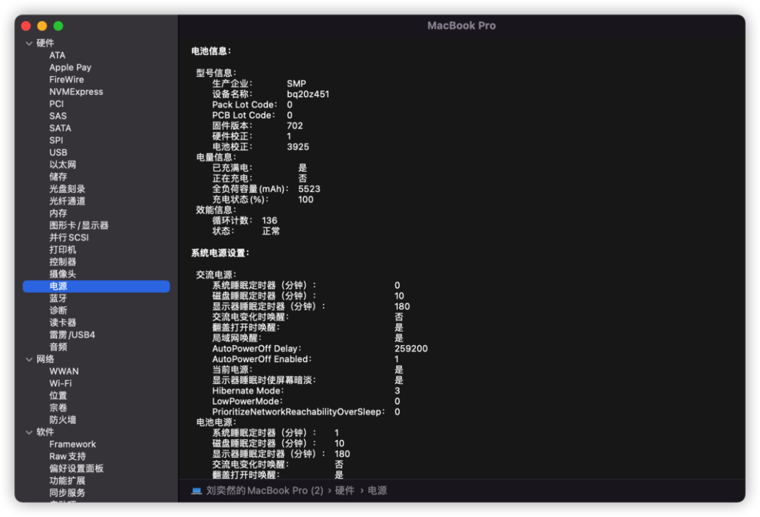 到手时电池循环次数是 133 次,回来几次完整充放电,测试充电功率后就到了 136 次。众多的笔记本使用经验作为对比,笔者觉得从使用 USB-C 充电的轻薄本而言,MacBook 相比 Windows 本而的电源调度更胜一筹,毕竟插电不掉循环次数。不过日常外带使用,才是大多数用户的实际适用场景,这样导致循环次数暴增后,产生的 MacBook 电池鼓包问题绝对是通病。