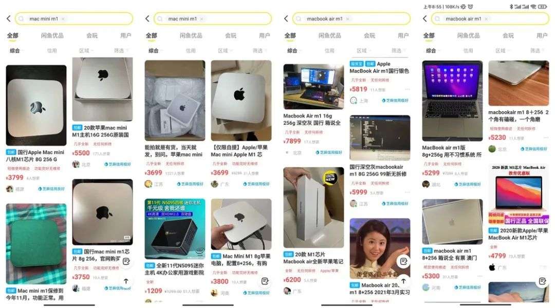 当然,性价比是相对的:二手最低配 8+256 的 M1 版 Mac Mini 要 ¥4000 上下,16G 的版本要再加一千;二手最低配 8+256 的 M1 版 MacBook Air 也要 ¥6000 上下,16G 的版本同样要再加一千。