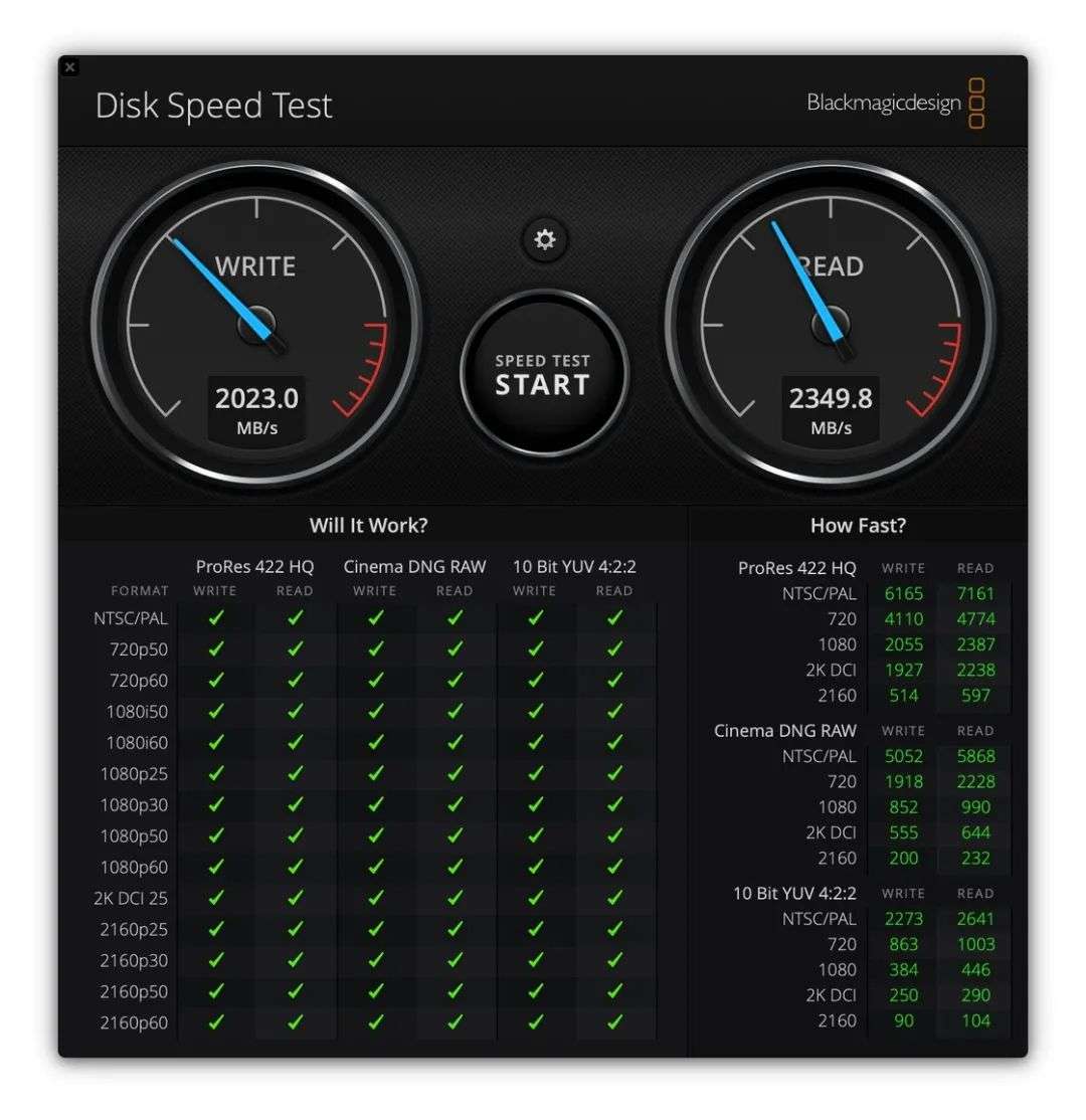 硬盘测试选择了 Black MagicDisk,读写速度都达到了 2GB/s 以上。