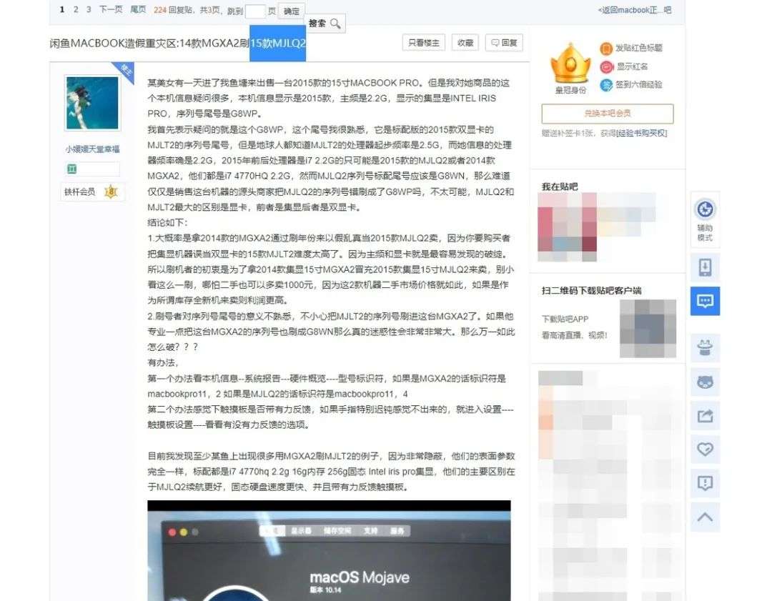 要注意因为处理器都是 Intel 四代,所有有不少用 14 款 MGXA2 刷机后冒充 15 款 MJLQ2 的情况,一下子就能多坑你几百块,要是带屏的完整机器就能坑你小一千了。