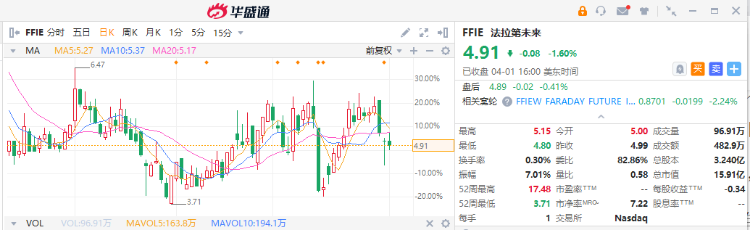 公开消息显示,去年10月份美奇金投资一纸做空报告之后,法拉第未来股价一路滑坡,截止到昨天收盘,报4.91美元/股,总市值15.93亿美元。
