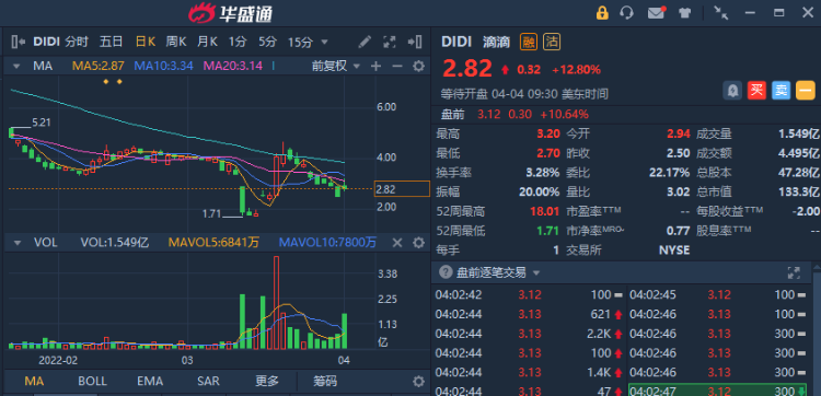 华盛资讯4月4日消息,美股中概股盘前多数走高,滴滴(DIDI)涨10%,哔哩哔哩(BILI)涨超11%,贝壳(BEKE)涨超8%,阿里巴巴(BABA)涨超5%,证监会拟修订中国企业境外上市有关规定,促进企业依法合规开展境外发行上市活动。