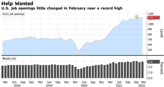 美联储官员认为,这一高数据表明美国劳动力市场非常紧张,再加上3月份失业率降至3.6%,正在推动工资上涨。 美联储还通过这些指标来证明,就业市场的强劲程度足以扛住加息,以应对40年来最严重的通胀。