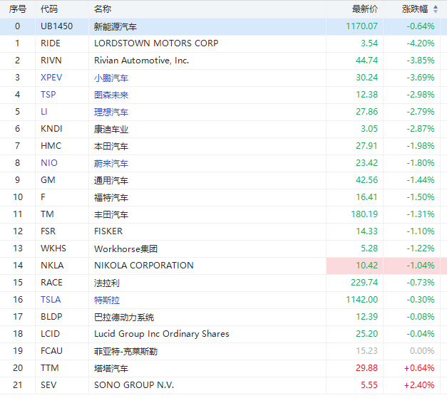 华盛资讯4月5日消息,美股早盘,新能源车股普跌,法拉第未来(FFIE)跌超7%,Lordstown Motors(RIDE)跌超4%,Rivian(RIVN)、小鹏汽车(XPEV)跌近4%,理想汽车(LI)跌近3%。