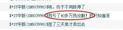 惨烈状况摆在这里,突然两只股票又被宣布拟退市,投资社区里网友已经炸锅。有网友表示已经亏了40多万,也有网友表示,“放我出去,以后再也不买ST股了”。