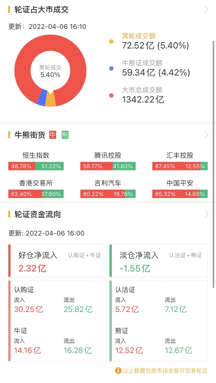 其中,窝轮总成交额为75.52亿港元,牛熊证总成交额为59.34亿港元。