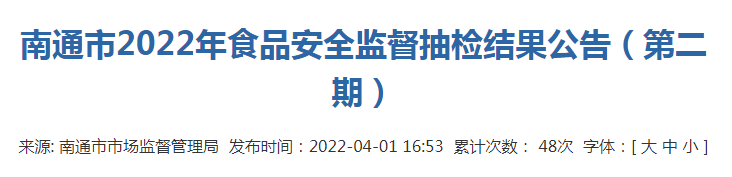 | 34 | DC22320600342630499 | 肉制品 | 腊鸡腿 | / | 2022-01-20 | 海门市许琼食品经营部 | 海门市海门街道丝绸路388号 | / | / | 谱尼测试集团上海有限公司 |