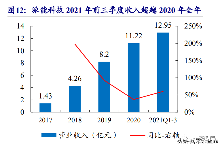 微型变流器业务发展迅速。公司作为光伏逆变器新秀,现有产品包括微型变流器、组 串式变流器、储能变流器等类型,目前公司变流器已销往巴西、南非、美国、印度、 波兰、巴基斯坦等 40 多个国家和地区。储能变流器的高毛利也使得其成为公司重点 发展的产品。2021 H1 公司变流器业务实现营收 3.79 亿元,其中储能变流器销售收 入约 1.8 亿元,同期增长 285.62%,产品销量约 2.62 万台,储能收入占比已升至 47.5%。(报告来源:未来智库)