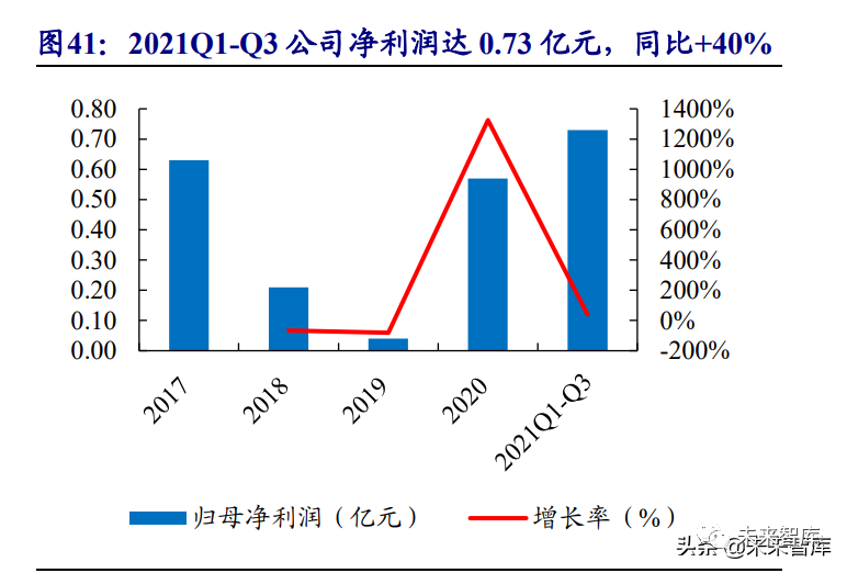 公司前期研发投入较多,2018、2019 年,公司净利润分别为 0.2 亿元、0.06 亿元。2020 年以后,公司新业务带来业绩增量,公司业绩表现改善。2020 年公司营收达 5.75 亿元(同比+57%),公司归母净利润达 0.57 亿元(同比+1325%)。2021 年前三季度, 公司营收达 5.72 亿元(同比+44%),公司净利润达 0.73 亿元(同比+40%)。