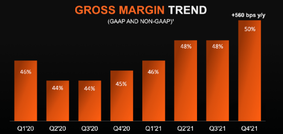 AMD 将强劲的收入增长与更强劲的利润增长相结合。AMD 的毛利率再次增长至 50%——环比增长 200 个基点,同比增长 560 个基点。