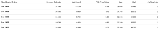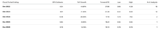 预计到 2023 年,收入增长将从那里大幅放缓至 14%。分析师预计收益将以更快的速度增长。