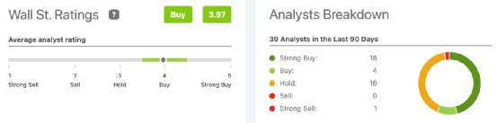 华尔街分析师对该股相当看好,平均评级为 3.97(满分 5 分)。