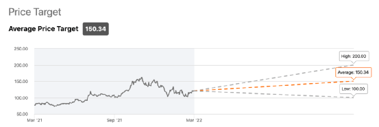 平均目标价为每股 150.34 美元,略高于 20% 的潜在上涨空间。