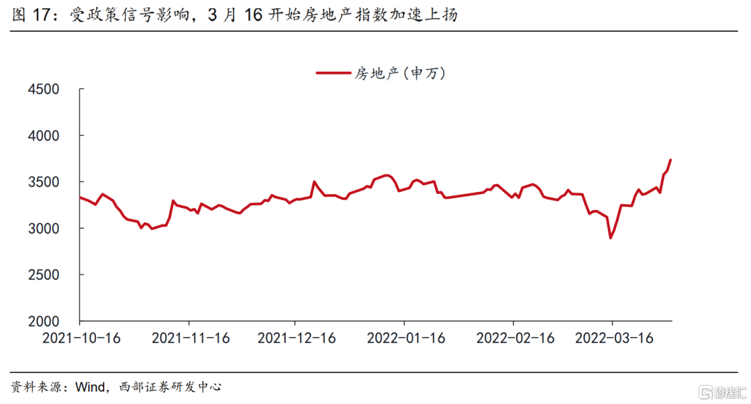 国务院金稳会后政策预期持续强化。3月16日,国务院金融稳定委员会召开专题会议,会议提出货币政策要主动应对,新增贷款要保持适度增长,关于房地产企业,指出“要及时研究和提出有力有效的防范化解风险应对方案,提出向新发展模式转型的配套措施”。此次会议释放了积极信号。加之,当天财政部负责人表示今年不具备扩大房地产税试点城市的条件,政策预期开始进一步强化。受此影响,房地产指数持续上扬。与此同时,福州、秦皇岛、衢州等地陆续出台地产宽松政策,市场对于政策放松的预期普遍趋于乐观。