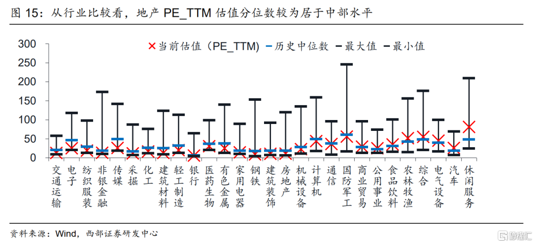 地产放松的政策窗口正在打开,估值仍有修复空间。当前,地产行业估值处于低位,下有政策底支撑,上有修复空间。随着一致性预期持续强化,宽松政策渐次出台,地产行业盈利预期有望带动估值修复,地产板块仍然具有长期配置价值。