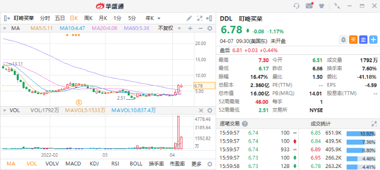3、中概生鲜电商股涨疯了!截至本周三收盘,叮咚买菜 $DDL 本周累涨85.75%,每日优鲜 $MF 累涨53.4%。