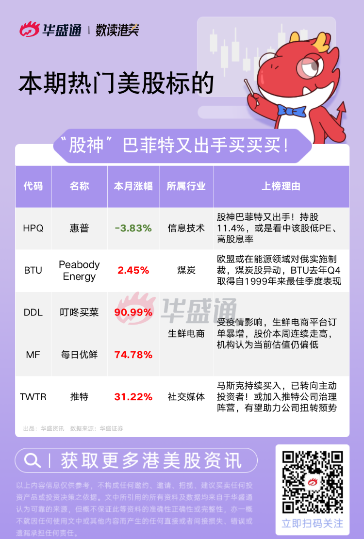 1、巴菲特“买买买”!出手加购惠普 $HPQ ,累计持股达42亿美元股票,该股周四大涨;