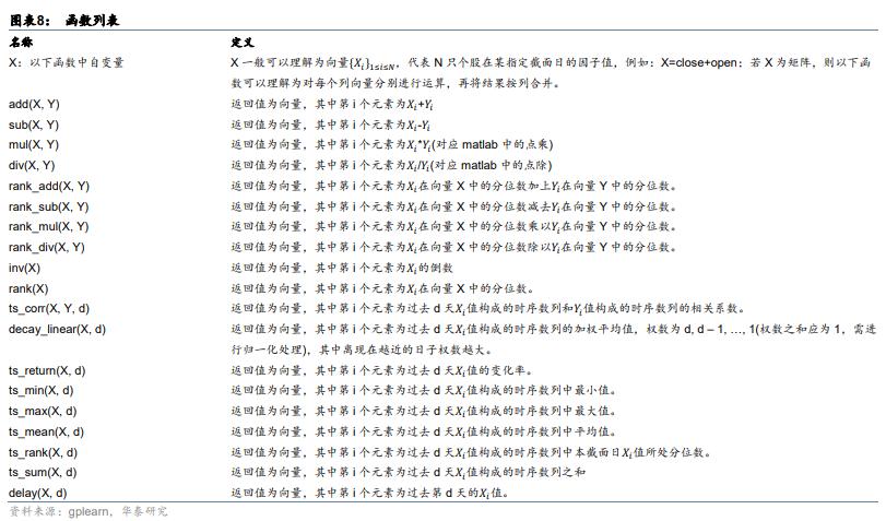 我们用遗传规划进行因子挖掘,并精选了下表的11个因子进行展示。